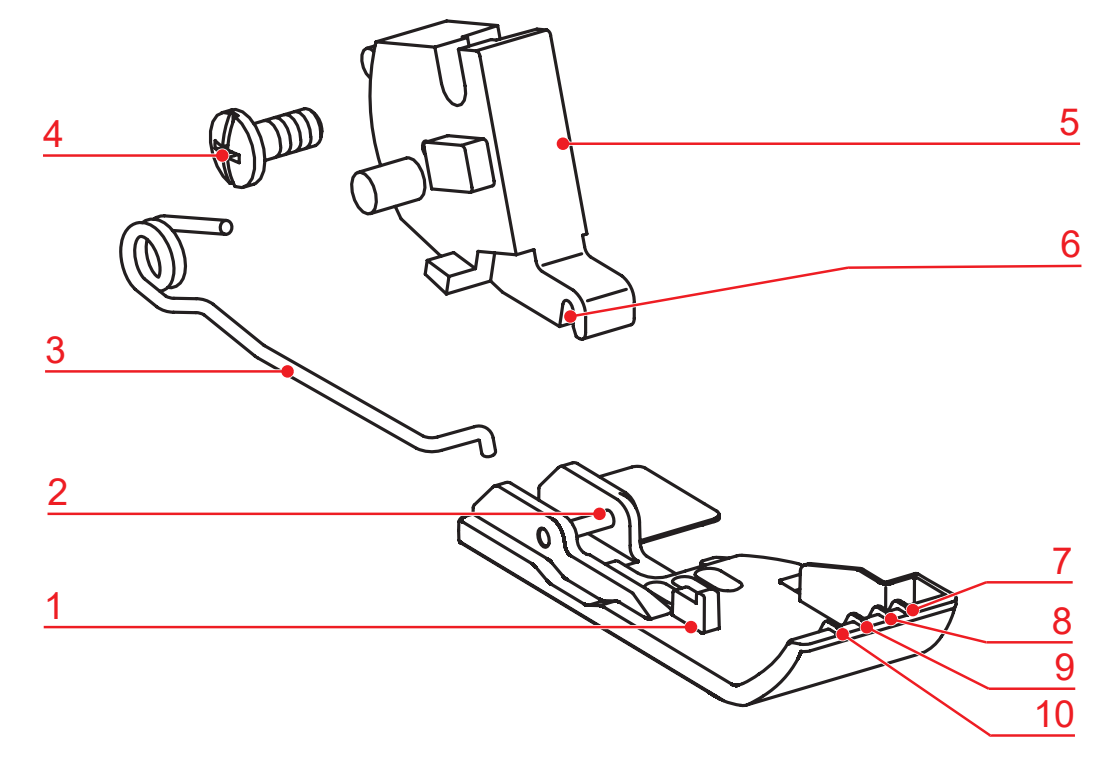 2 | Pecek a talpon | 7 | Jelölés: Jobb overlock tű (RN) |